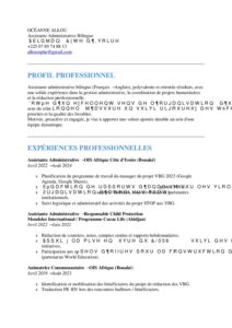 Assistante administrative bilingue (Français – Anglais), polyvalente et orientée résultats, avec une solide expérience dans la gestion administrative, la coordination de projets humanitaires et la rédaction professionnelle.