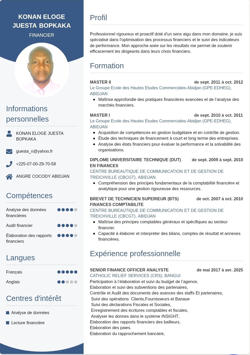 guesta n guesta_n@yahoo.fr Ajouter aux favoris Télécharger le CV Expérience Compétences Formation Description Portfolio Distinctions Profi Portfolio