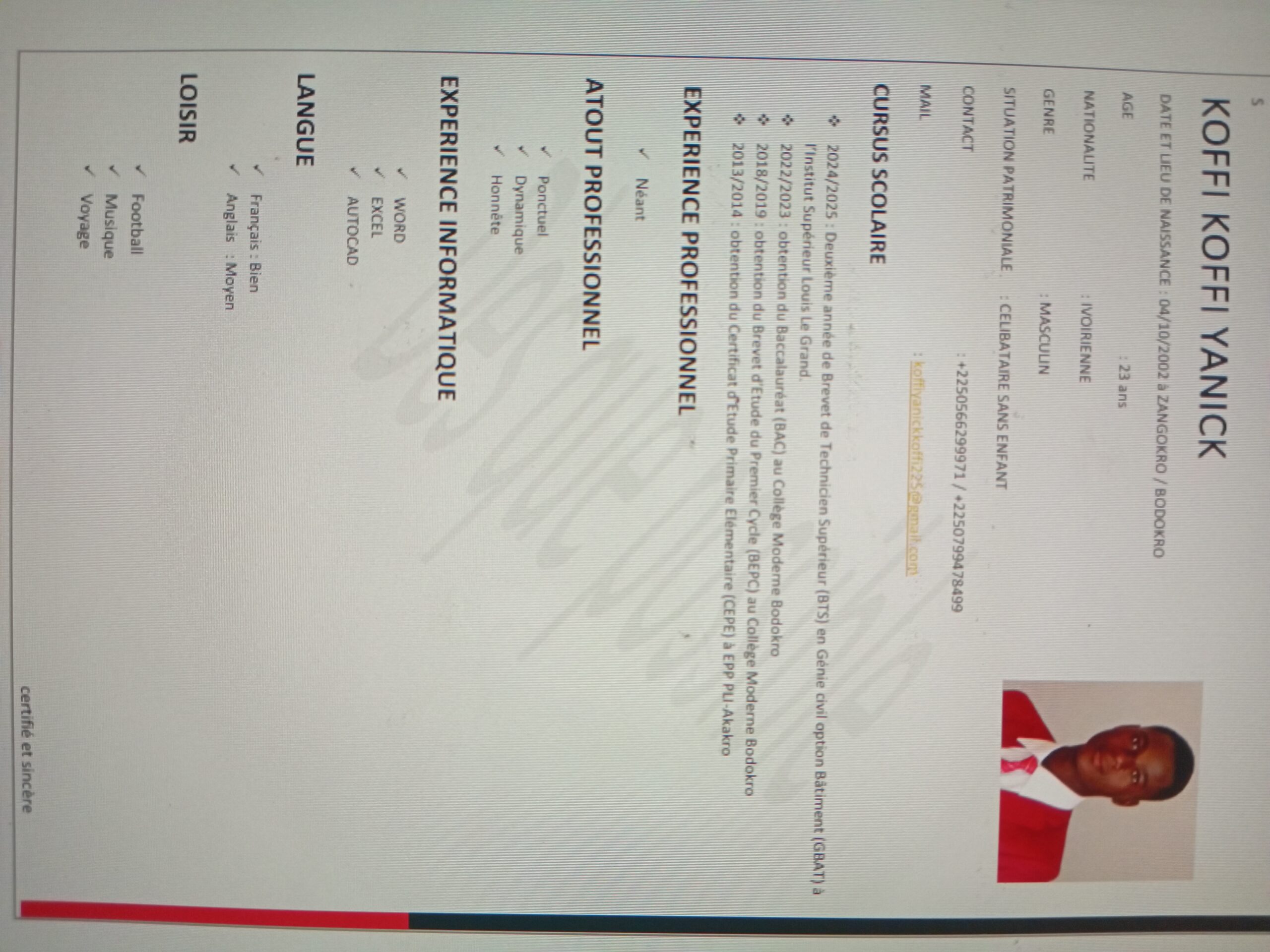 Yanick Bâtiment 0466299971 0466299*** afficher Koffiyanickkoffi225@gmail.com Ajouter aux favoris Télécharger le CV Expérience Compétences Formation Description Portfolio Distinctions Profi Portfolio